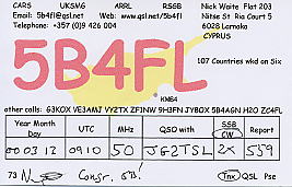 | 2000/11/5 | 14:30 | 5B4FL | 50.MHz | CW | 599 | HRD | Cyprus |