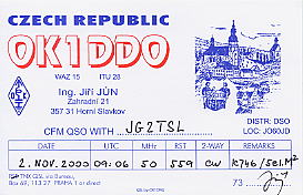 | 2000/11/2 | 18:10 | OK1DDO | 50.089MHz | CW | 559 | 559 | Czech Republic |