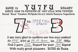 | 2000/11/2 | 18:15 | YU7FU | 50.088MHz | CW | 559 | 559 | Yugoslavia |