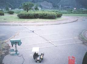 | 製作中のアンテナ 安倍川の河川敷にボール盤という異様な光景(hi) |