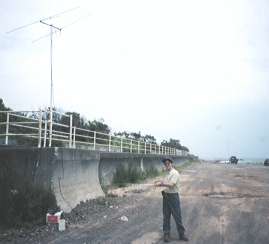 | これが今回製作したアンテナ ちなみに実験場所は清水市駒越海岸です。 送信アンテナとは80mほどの距離があります。 |