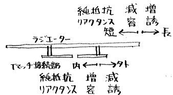 純抵抗を大きくしたい時は、Tマッチの接続点を内側にずらすか、エレメントの長さを長くする。