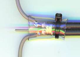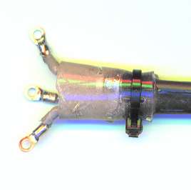このホースを半田付けした部分に被さるようにはめこみます。そしてインシュロックで止めます。