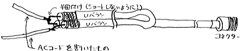 b.上記の芯線にACコードを半田付けする。