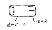 透明ホースを3cmほどに切断し、片側に4ケ所切れ目を入れます。