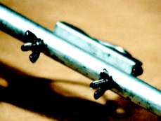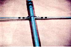 いろんな種類のマストクランプがありますが、私は蝶ねじ2個で締め付けることができる、Uボルト1個のタイプを利用しました。実際にはアンテナを組み立ててしまって、重心の位置を調べてから取り付けてください。