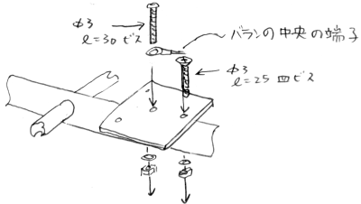 5.C.で製作したバネとビスを以下のようにセットして取りつけます。
