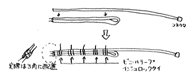 2本製作しますが、1本の片側にはM型コネクター(メス)を取り付けます。他の端部(※2)は以下のように加工します。