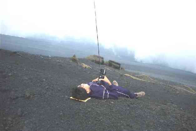 一眠りしたあと、少し意識が戻って、雨の音を注意深く聞いていると段々弱くなっているような気がします。「弱くなれ、弱くなれ」と念じているとそれに答えるように雨音が弱くなってきました。1時間ほどは横になったんでしょうか? 雨が弱くなったのを見計らって、外に出ると、LTAも外に出てきました。まだ時折雨は降っていましたが、アンテナを設営。アンテナ自体はコンパクトなのでほどなく設営完了。発電機も試運転させて、機器の動作チェックを行いました。うまく動いているようです。