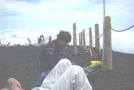 その後も何度か休憩しながら新6合目に到着。ここからは下りですが、ところどころ足場が悪いので慎重に行かねばなりません。荷物が重いのでなおさらです。
