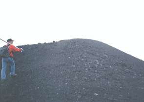 | 平坦な尾根の上を歩く この向こうに宝永山の山頂がある。 |