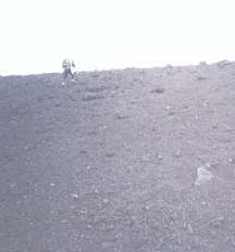 新6合目でしばし休憩した後、出発。この後少し歩くと、富士山山頂へのルートと宝永山へのルートとに別れます。宝永山へのルートは緩やかな下りです。こちらに向かうのは僕たちのグループしかいませんでした。