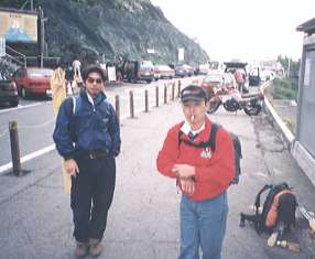 | 出発前の様子 JM2RUV,JH2DMI 後ろに見えるのが駐車場 左側の看板が登山口 |