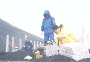 13:30頃に運用を終了。13:45頃には現地を出発しました。上りで苦しめられた坂も、帰りが快適。1歩進むと、2歩進む。雨と霧の中、なんとか引き返してきました。それにしても霧でほとんど視界のない宝永火口は、地獄絵の様相でした。不気味度100%。