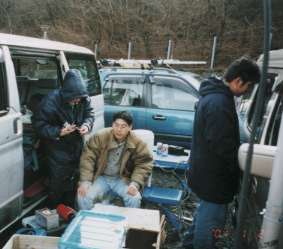 | 強風のため、コンロを囲うように車を止めました。 シェフ! 今日のメニューはなんですか!? |