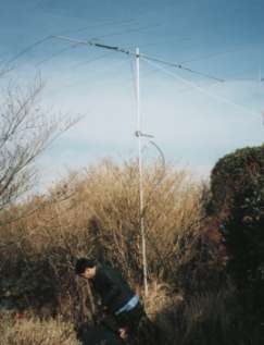 | 今年はHFもいいかげん。 逆Vの真中にオートアンテナチューナーを入れて給電しただけ |