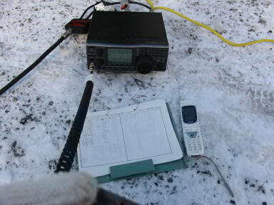 せっかくGPを上げたので、430MHzFMにも出てみました。しかし、1台の車の中で2バンドを運用するのは苦しい・・・ってなわけで、V,UHFの設備は外に出してしまいました。題して雪上運用