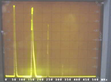 | 非常にシャープな特性。 100MHzでも200MHzでも-80dB以下(測定不能) TVIの原因にはならないが、150MHzはつっつ抜け。 帯域内減衰が多少大きい感じ。 | 奇数倍周波数は減衰しないみたい。 | |